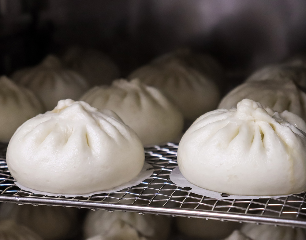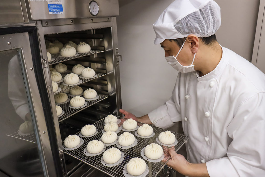 そこにどんな秘密があるのか興味津々で尋ねたところ、生地に使うのは小麦粉、天然酵母、砂糖、粉ミルクだけ。シンプルだからこそ技術が問われる生地は、季節や温度、湿度によって発酵時間を調整し、ベストな蒸し時間を算出。何度も試行錯誤を繰り返し、納得のいく味と食感にたどり着いた絶品の生地。1つ1つ丁寧に、手包みして作られる美しい皮のひだも“熟練した職人のなせる技”です。